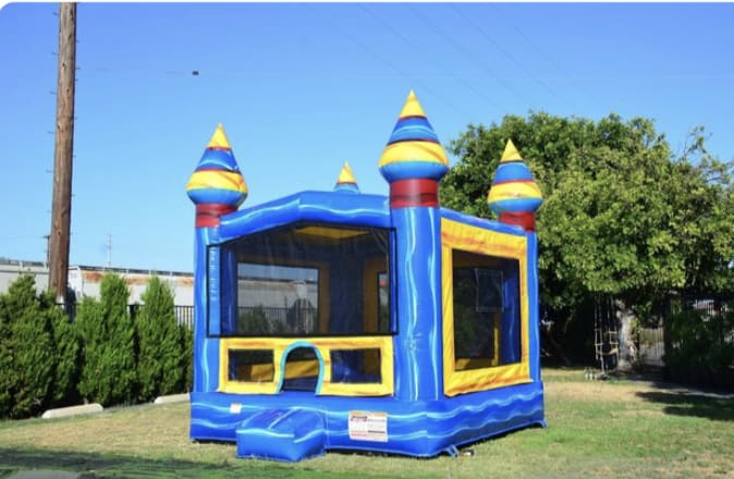 This bounce house colors are amazing with the flourishing marble colors. This bounce house has a basketball goal located on the inside . This unit is the perfect color for a paw patrol, baby shark, toy story and many more.