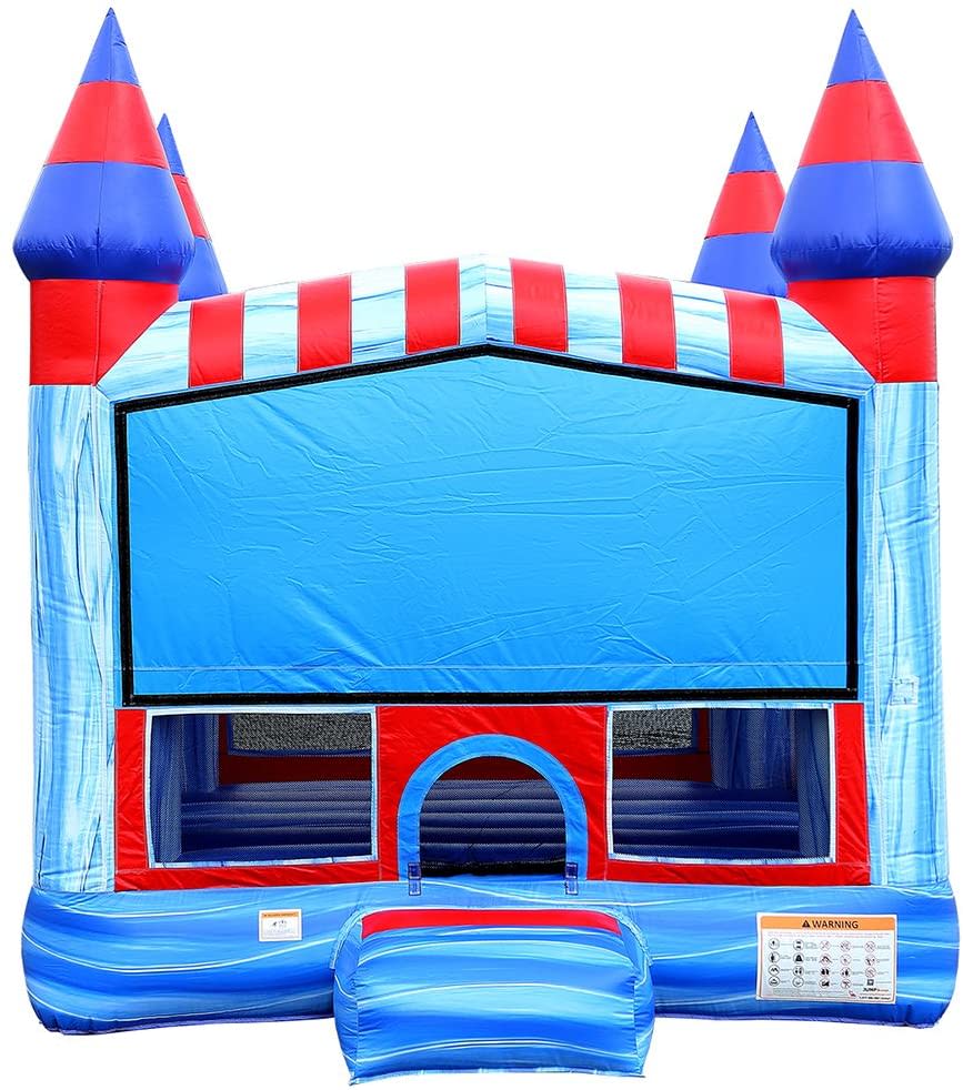 The Glacier 13' x 13' Bounce House includes a basketball hoop and large bouncing floor. This inflatable is a desirable rental choice for any party. The colors of the bounce house go perfect with the baby shark, frozen, and many more themes.