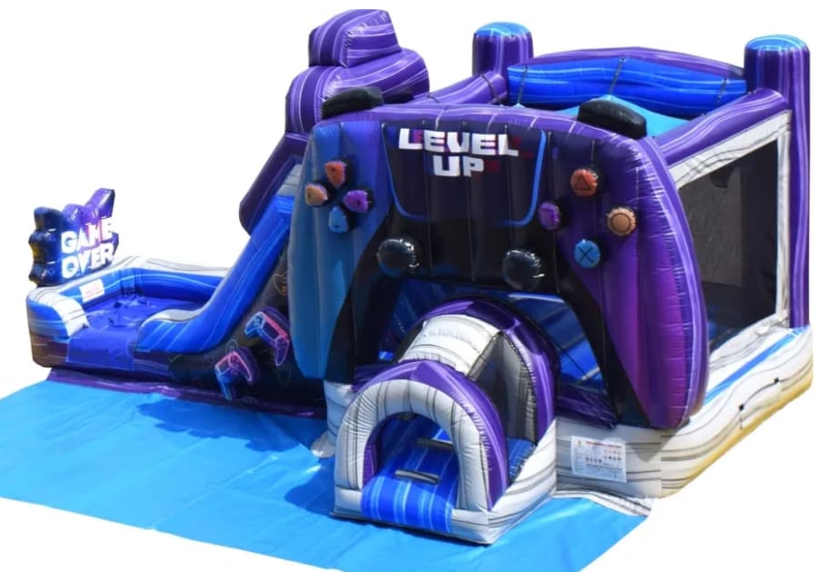 Are you ready to take your next party or event to the next level? Look no further than the Game Over Combo! This incredible bounce house and slide combo is every video gamer's dream come true. With its unique design featuring a video game controller on the front, this combo is sure to capture the attention of gamers of all ages.