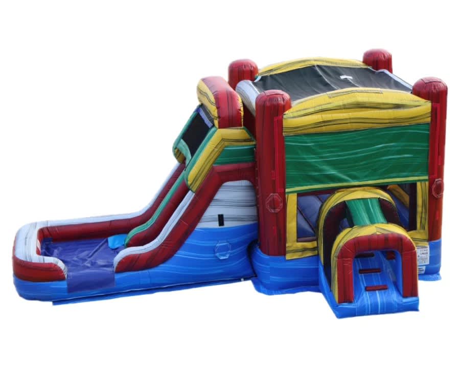 Book our combo Mega Fun Adventure Combo in Conyers, Atlanta, Stockbridge, mcdonough, social circle, lithonia for an unforgettable party centerpiece. This neutral-colored blue, red and yellow combo is a versatile attraction. Use it as a classic bounce house in conyers events or convert it into a waterslide bounce house for hot days. Fast setup. Safe play. Instant excitement. 🔥
