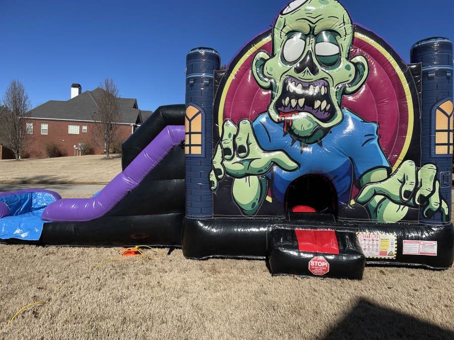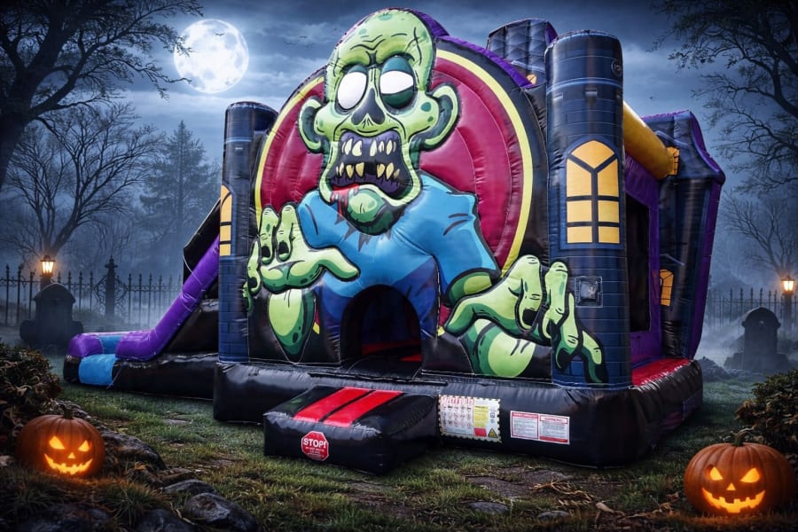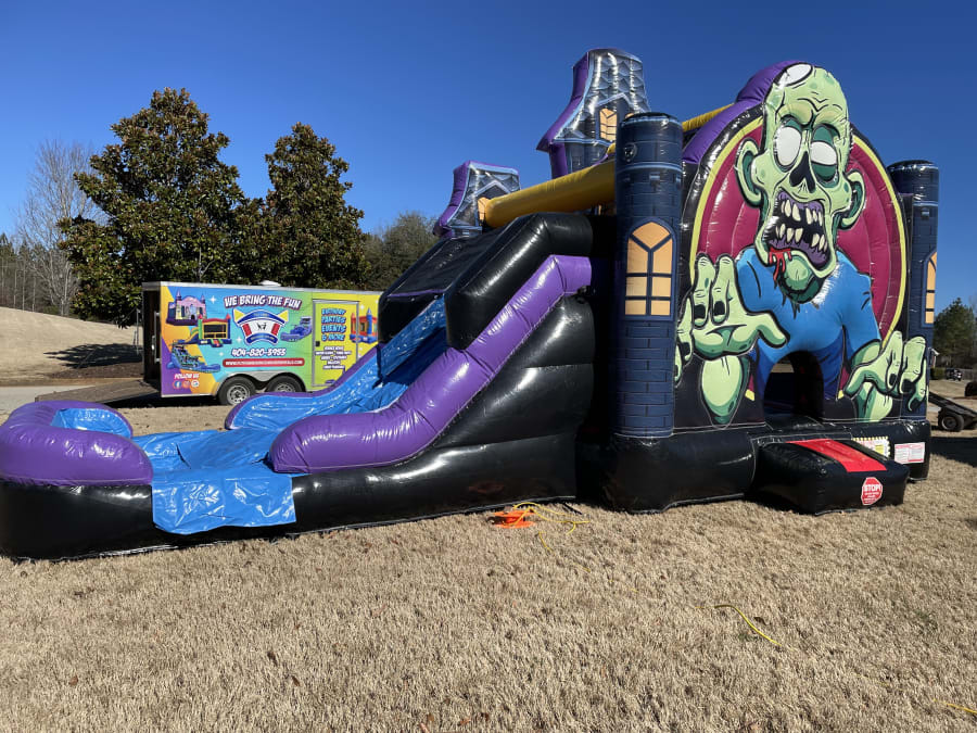 Book our bounce house with slide rentals in Conyers, Lithonia, Covington, Social Circle, McDonough, and Stockbridge today and let the Zombie Combo bring your event to life! 🧟♀️