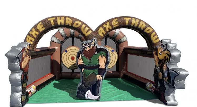 This axe throw interactive inflatable game is available in covington, Conyers, Social Circle, Lithonia and more