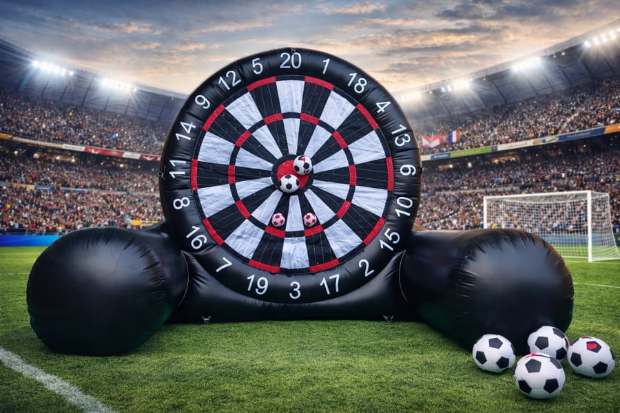 ⚽️ Perfect for soccer enthusiasts of all ages, this giant inflatable soccer dart game stands at an impressive 15 feet tall, guaranteeing hours of entertainment and excitement. Whether you're hosting a birthday party, corporate event, or school carnival, this game is sure to be a hit with players and spectators alike!