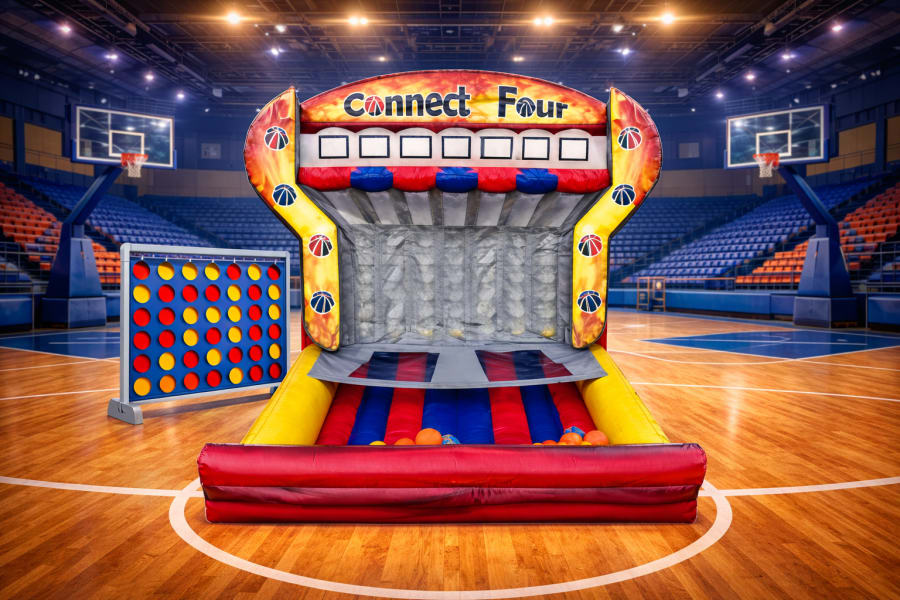 - Inflatable court with built-in Connect Four grid and hoop. 🎯