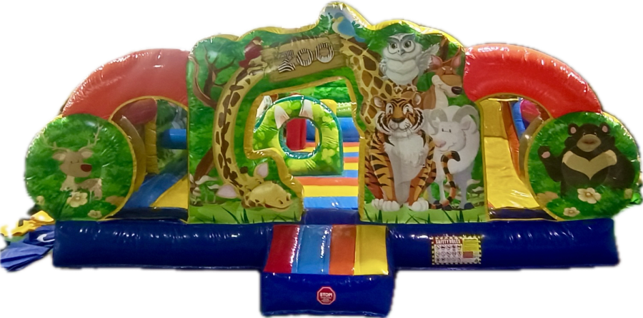 Introducing Zoo Toddler Land, the ultimate bounce house experience for young adventurers! 🌟 With its vibrant zoo animal graphics and safari-inspired design, this bounce house will transport your little ones straight into the heart of the jungle. 🌴🐵