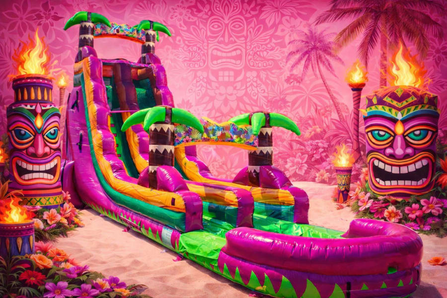Make your next party unforgettable with the 20FT Aloha Splash Waterslide. This eye-catching pink waterslide and girl waterslide favorite delivers a thrilling 20-foot drop, splash landing pad, and bright tropical design. Perfect for birthday party rentals, backyard events, and weekend celebrations. Rent a waterslide that doubles as a bounce house alternative and keeps kids active and smiling. πΊπ¦