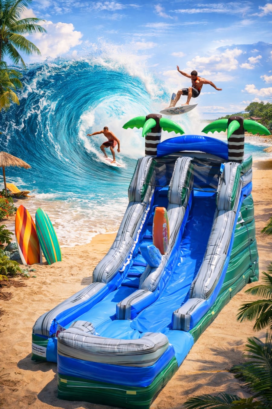 We proudly deliver and set up the 16ft Tsunami Wave in coveted areas including Conyers, Covington, Social Circle, Atlanta, and Stockbridge. Experience the best waterslide in town and make your event unforgettable!