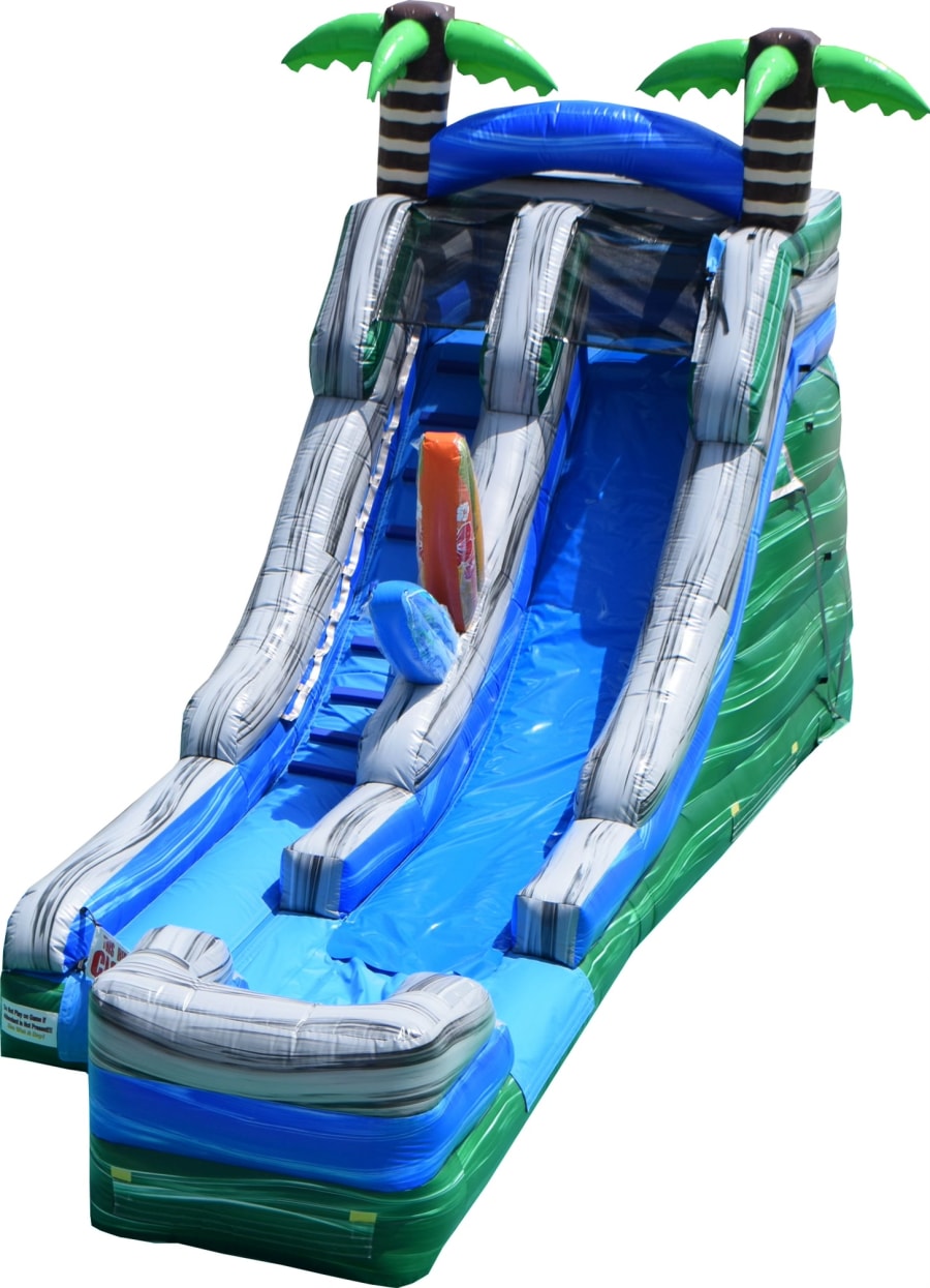 Don't miss out on the chance to ride the wave of fun this summer with the 16ft Tsunami Wave waterslide. Book your adventure today and let the good times roll! 🌊🎉
