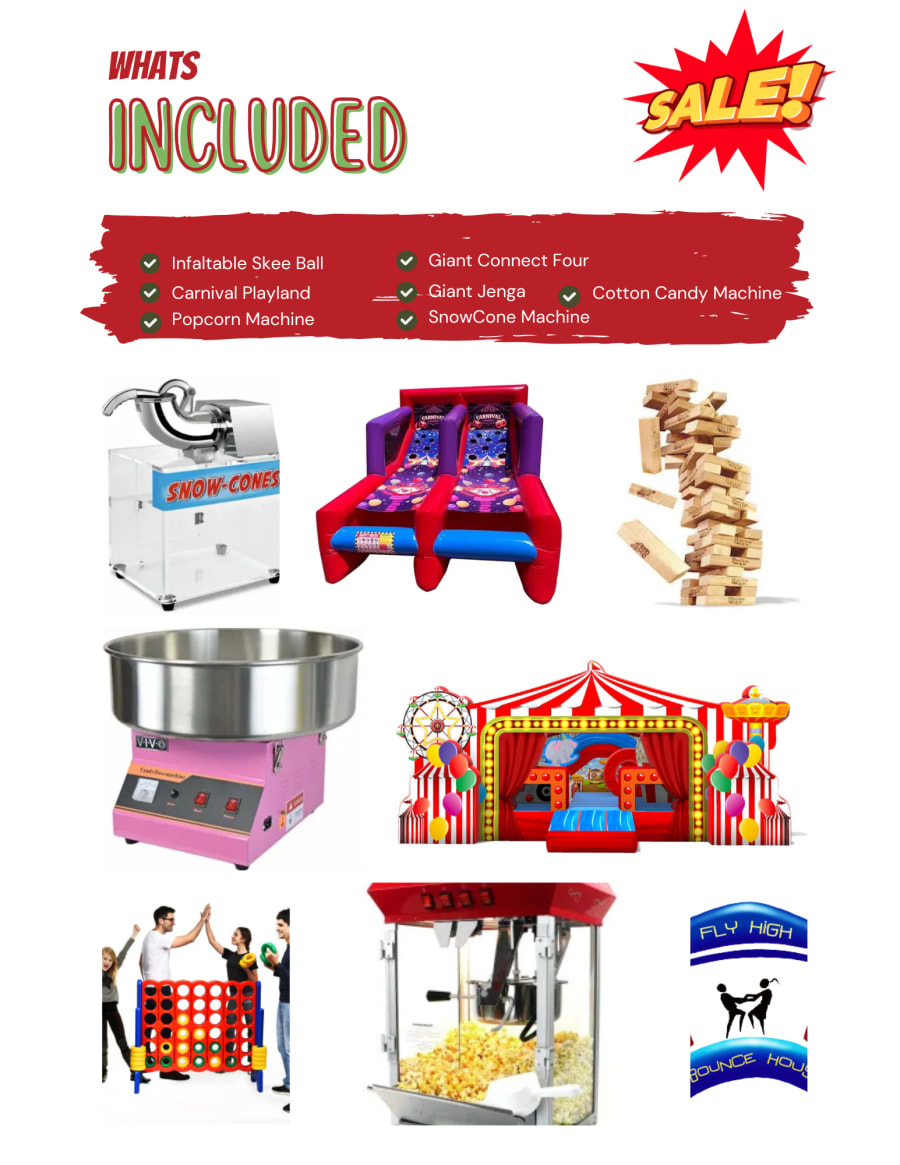 - Popcorn, Snowcone, and Cotton Candy Machine: Delight in classic carnival treats that will satisfy every sweet tooth.
